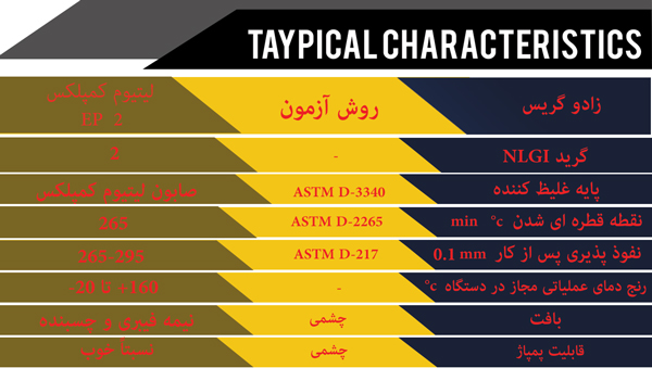 گریس لیتیوم کمپلکس EP2 زادو متشکل از روغن پایه مرغوب و صابون لیتیوم کمپلکس و مواد افزودنی مناسب جهت افزایش مقاومت در برابر فشار و بارهای مکانیکی وارده می باشد.